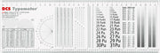 Haarscharf Schriftgrößen bis zu 340 Punkt ermitteln, Zeilenabstände in Pica-Points ablesen, Linienstärken, Kreise, Winkel und alle DIN-Formate auf einen Blick gibt's standardisiert auf unserem Typometer.