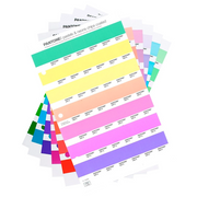 Eine Seite enthält 7 Pastels & Neons Coated-Farben mit jeweils 6 perforierten und heraustrennbaren Chips.