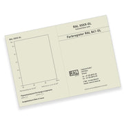 Das Farbregister RAL 841-GL beinhaltet 196 RAL CLASSIC Farben in high gloss. Die Karten sind verbindliche Farbvorlagen für Farbnachstellungen und Qualitätskontrolle und beinhalten XYZ-Werte, die Angabe des Abstands zum Urmuster und die Remissionskurve.