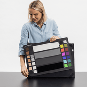 The sturdy black portable case for the ColorChecker Classic or Video XL offers ultimate durability and protection for your target when you want to store it or are on the go on a shoot. The case is made of black polyester and is lined with soft tricot fabric on the inside to fully protect your chart.